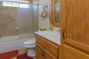 Ground floor bath servicing the bunk room and pool areas with walk-in shower with bath toiletries provided.